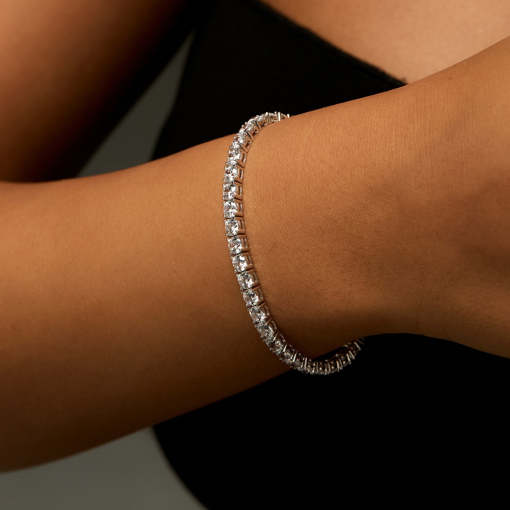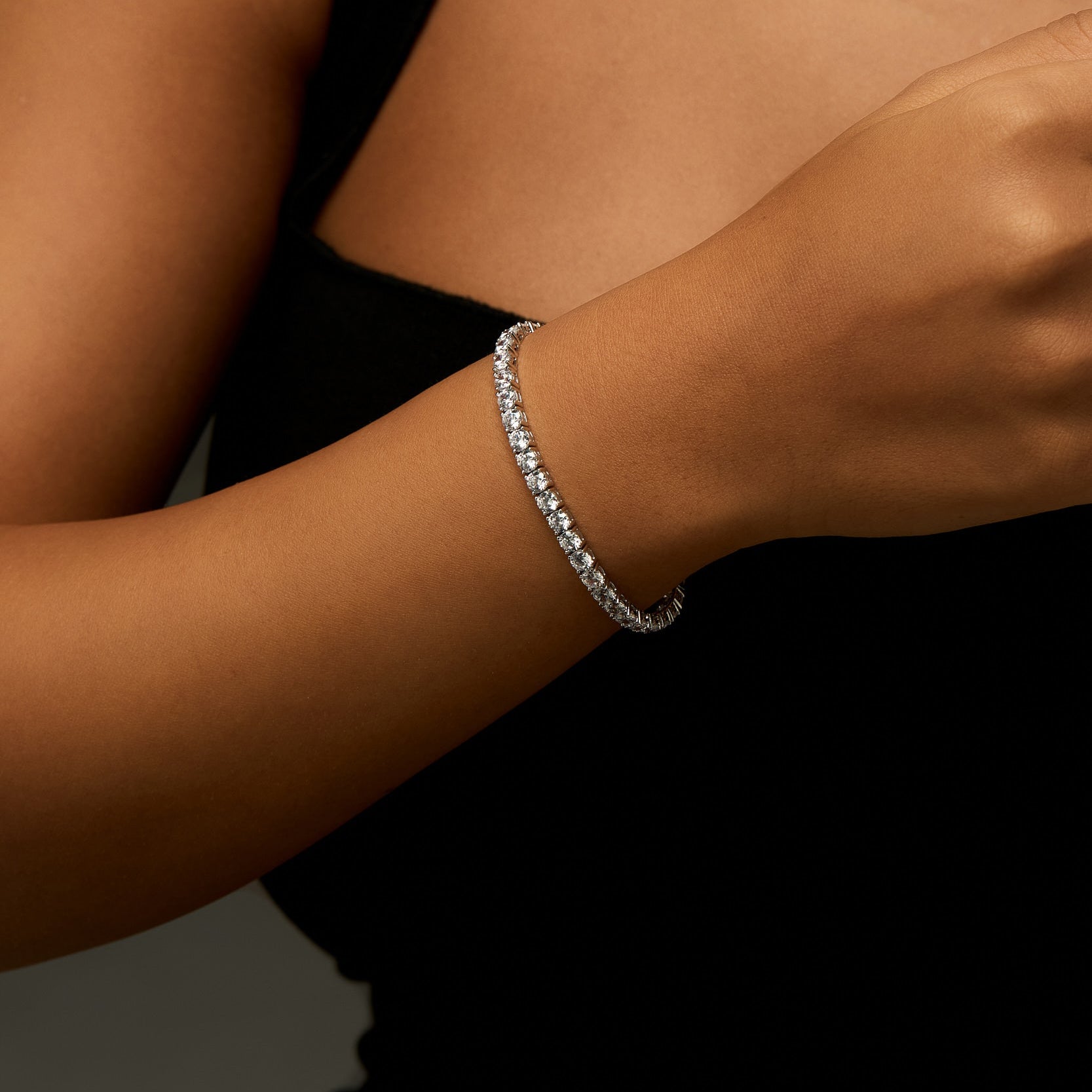 Remie Jewelry’nin zamansız parlaklığını yansıtan 4mm Su Yolu Bileklik, klasik ışıltıyı modern bir zarafetle buluşturur. Her biri özenle yerleştirilmiş yuvarlak kesim taşlar, bileğinizde güçlü ama zarif bir parıltı yaratır. Işığı her açıdan kusursuz biçimde yansıtan bu tasarım, hem günlük kullanımlarda sade bir şıklık sunar hem de özel davetlerde asil bir tamamlayıcı olur. 925 ayar gümüş üzerine yüksek kaliteli rodyum kaplama ile üretilmiştir.