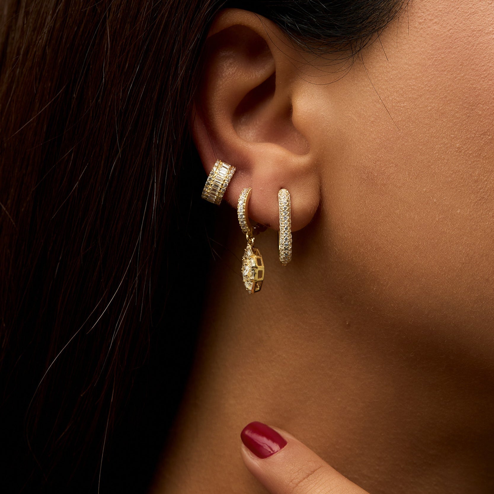 Remie Jewelry’nin zamansız ışıltısını yansıtan Baget Halka Küpe, klasik halka formuna modern bir dokunuş kazandırır.