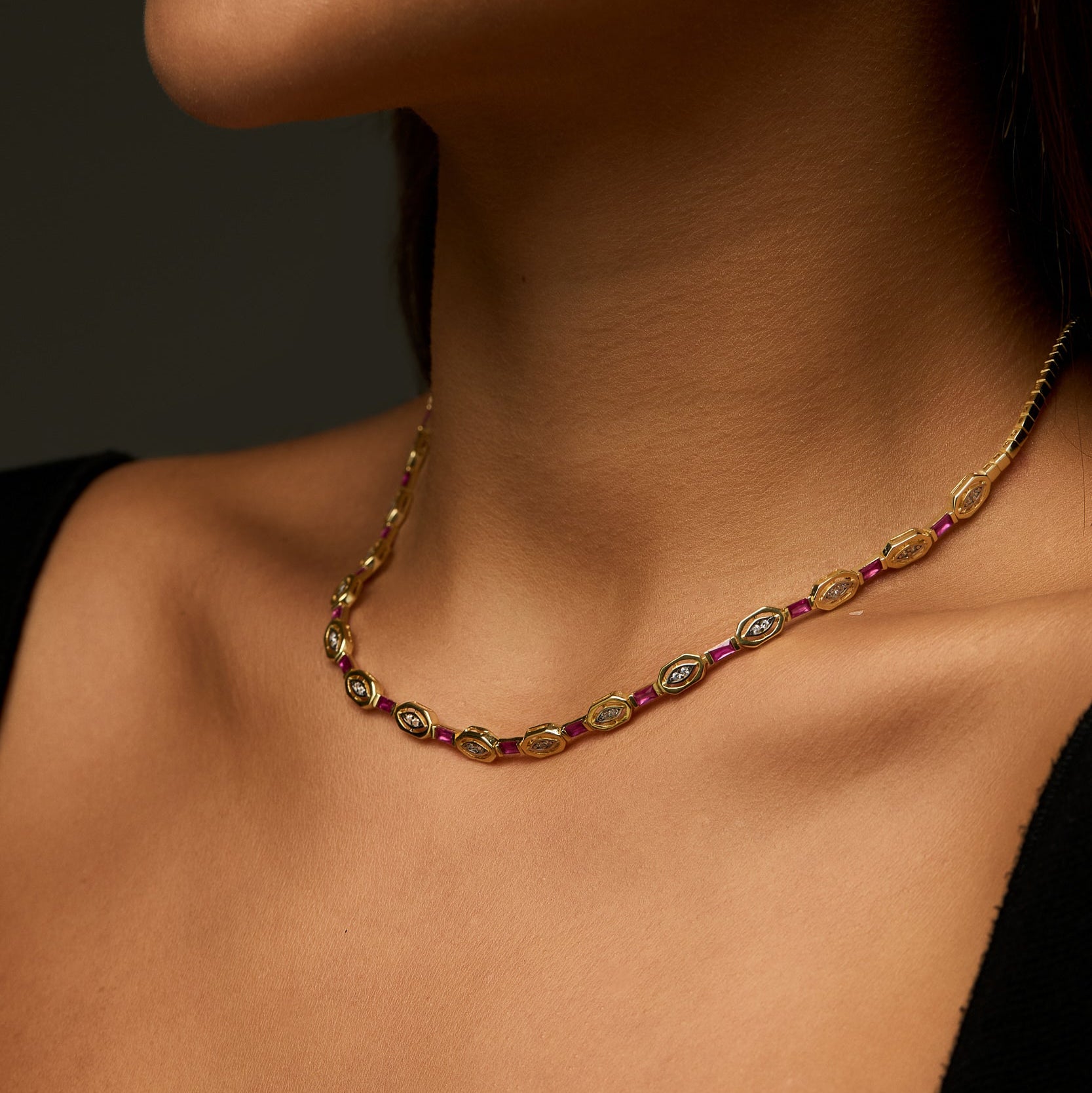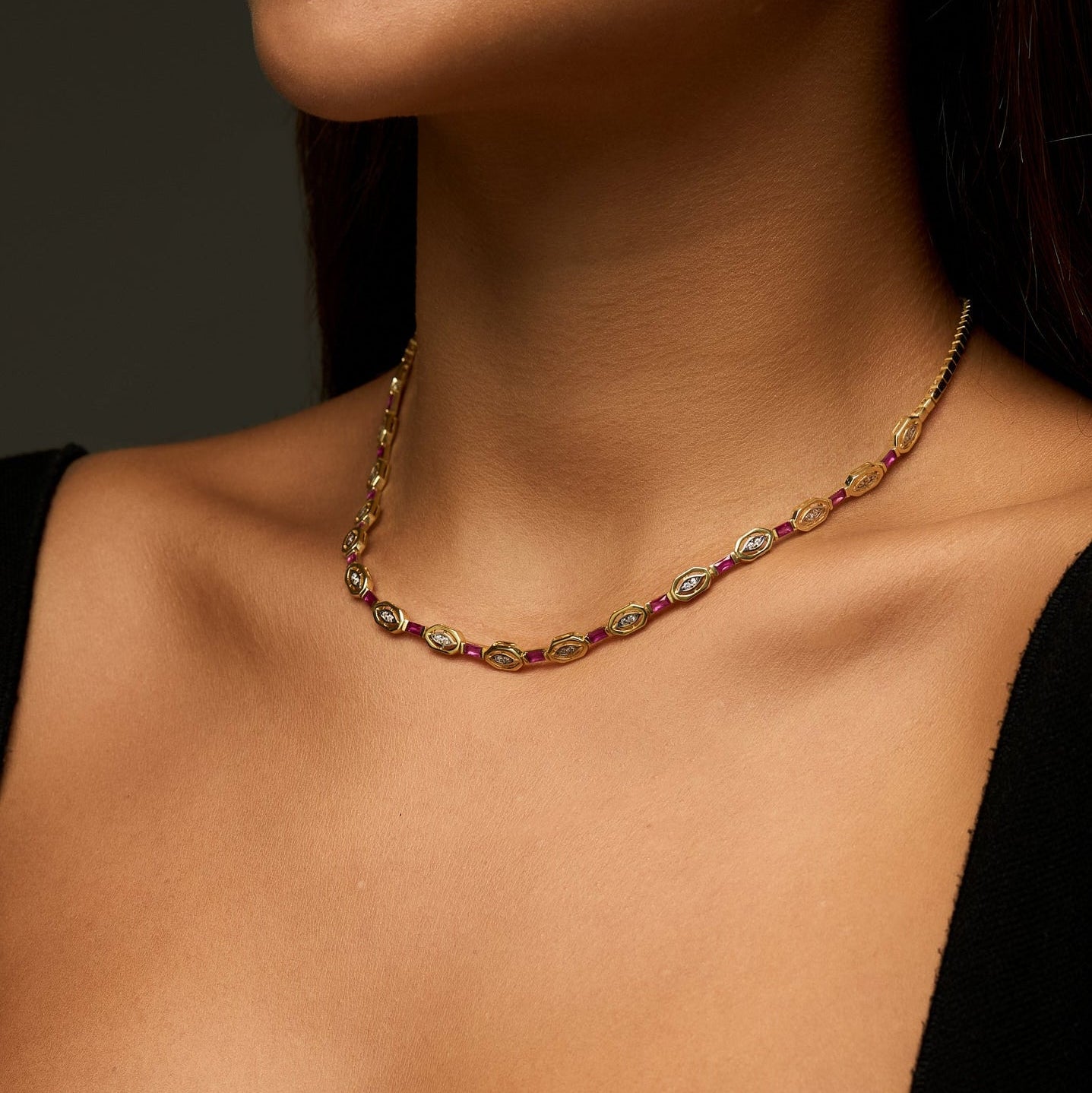 Remie Jewelry’nin zarafetle harmanlanmış tasarımı Selene Kolye, ay ışığının gizemli ışıltısından ilham alınarak tasarlandı. Altın detayların sıcak tonları, pembe ve beyaz taşların büyüleyici parıltısıyla kusursuz bir uyum yakalar.