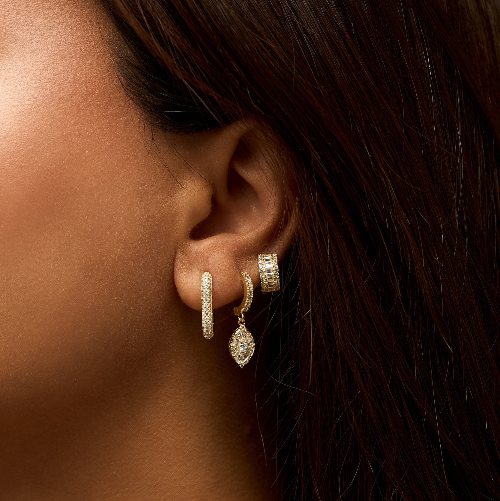 Remie Jewelry’nin zamansız zarafet anlayışını yansıtan Sallantılı Oval Taş Küpe, ışığı her hareketle yakalayarak büyüleyici bir parıltı sunar.