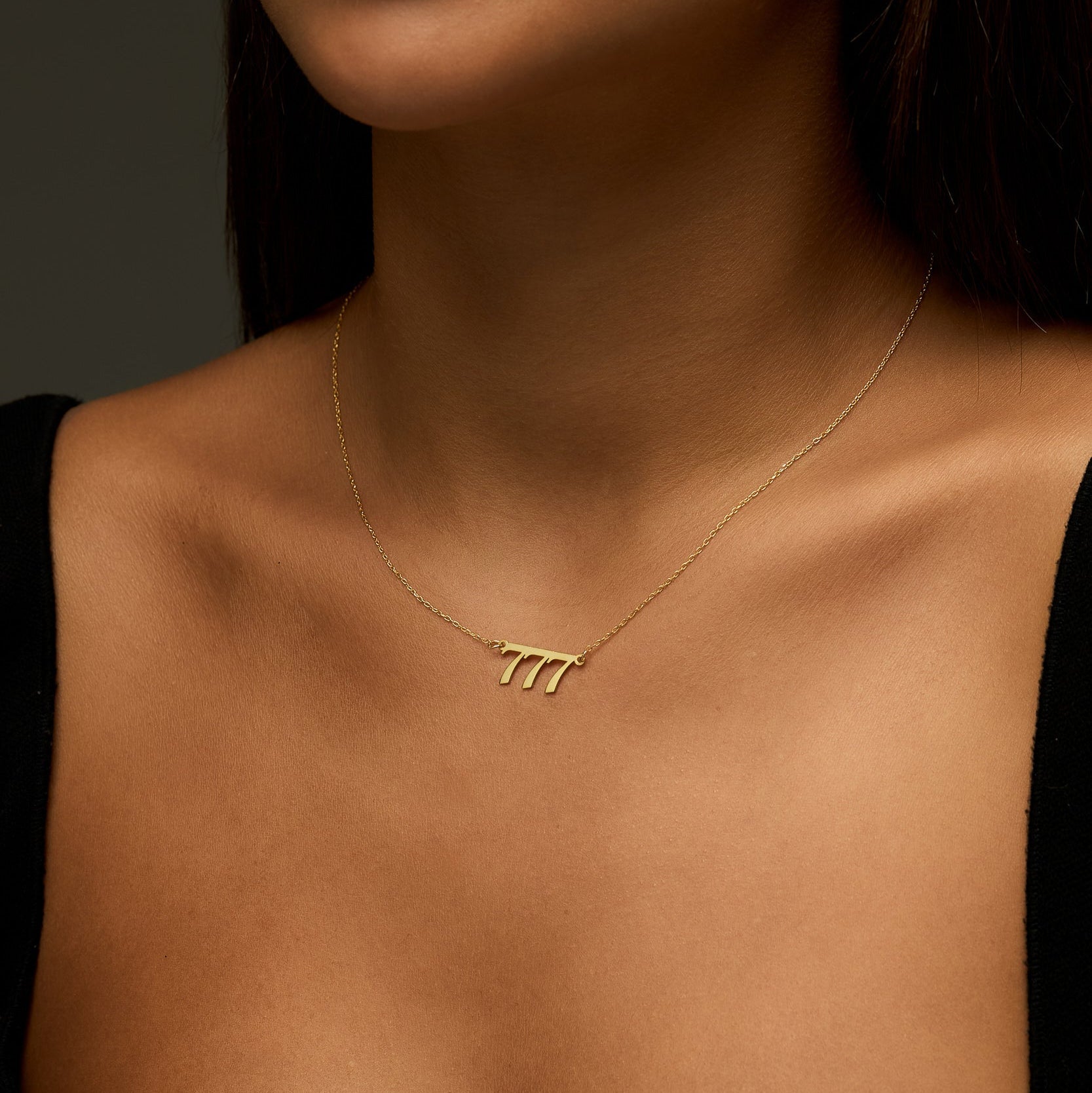 925 ayar gümüş üzeri yüksek kalite altın kaplama ile üretilen 777 Kolye, hem günlük kombinlerde enerjini yükseltir hem de özel anlarda ışığınla fark yaratmanı sağlar.