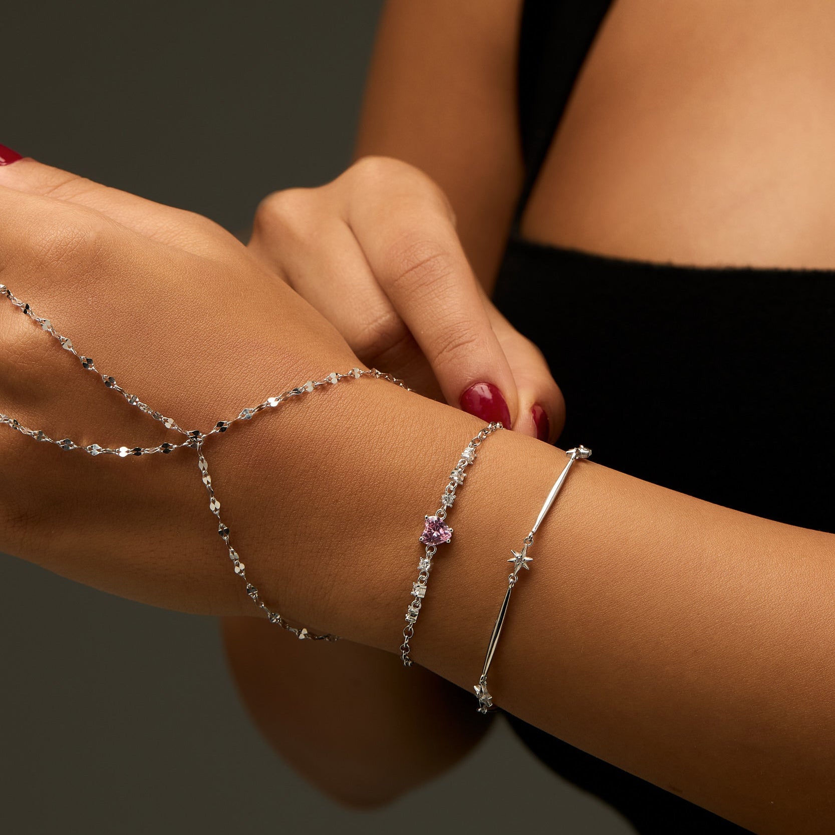 • Tasarım: İnce zincir halinde merkez taşlı bileklik
