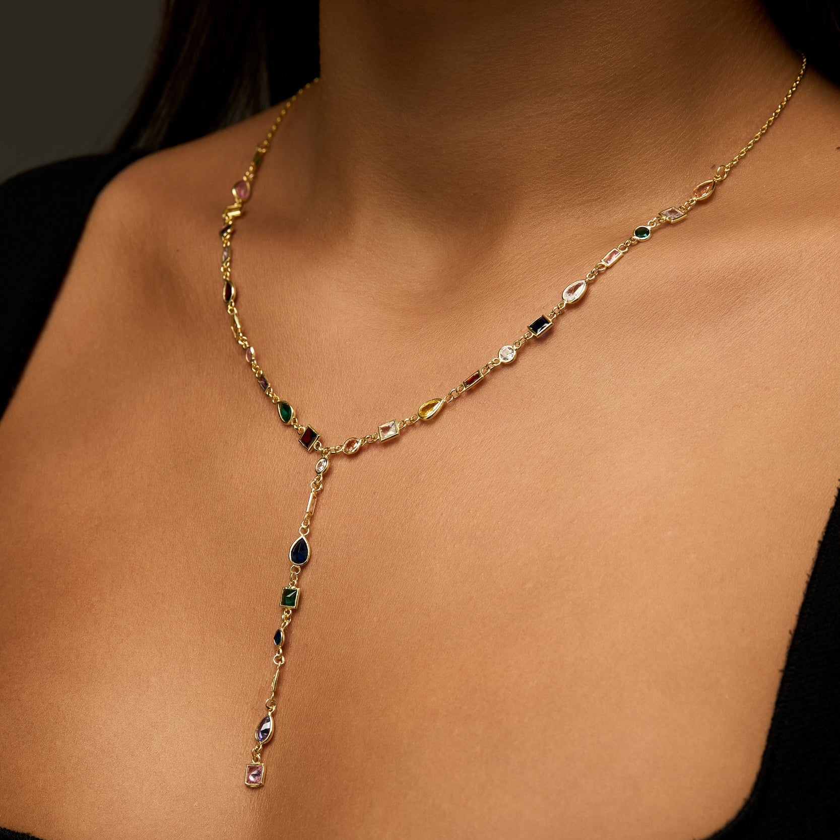 Remie Jewelry’nin zarif tasarımı Lyra Y Kolye, yıldızların renkli ışığından ilham alınarak tasarlandı. Zarif Y formundaki zinciri boyunca sıralanan mavi, yeşil, pembe ve beyaz taşlar; enerjiyi, uyumu ve feminen zarafeti bir araya getirir. Her taş farklı bir duyguyu temsil ederken, birlikte kusursuz bir bütünlük oluşturur.