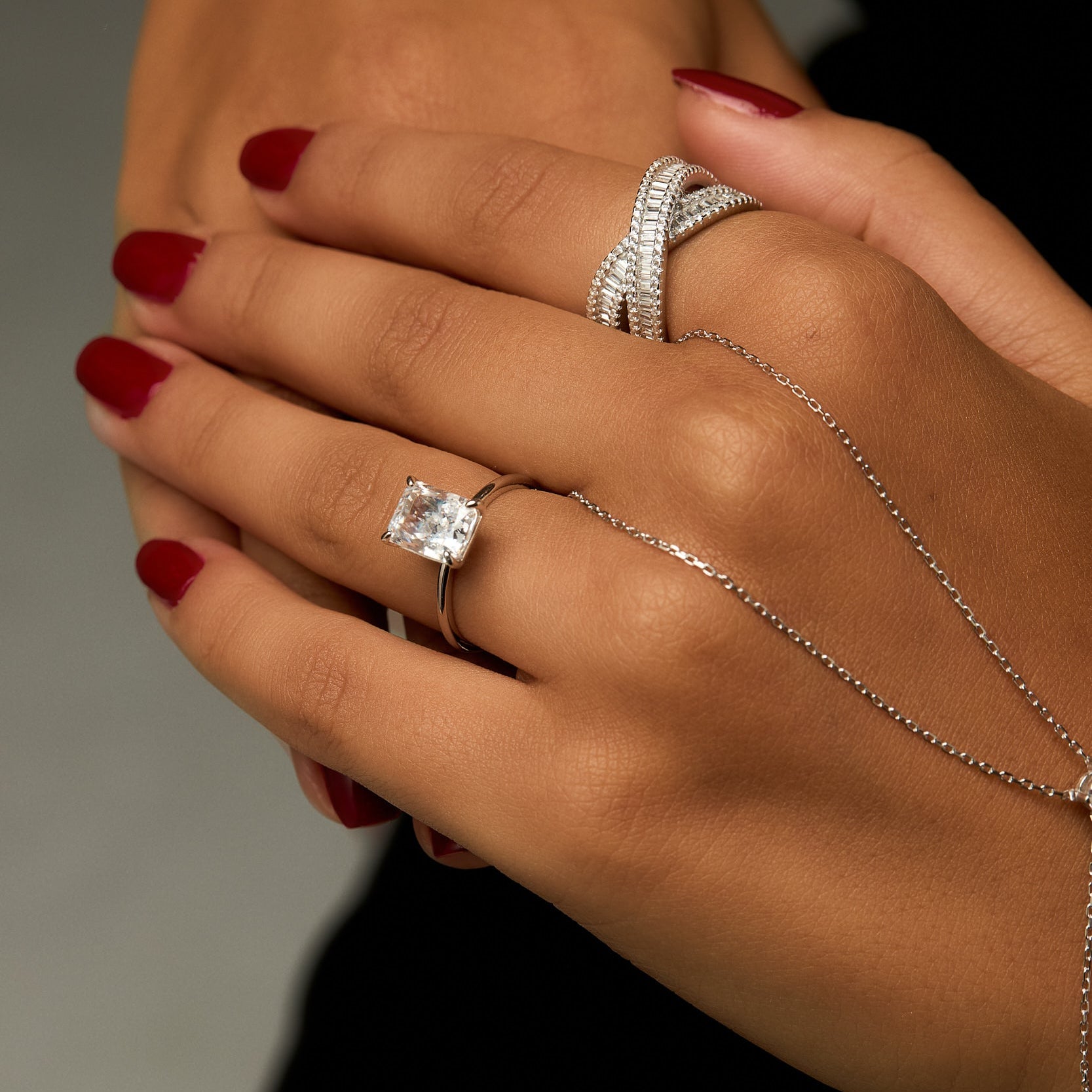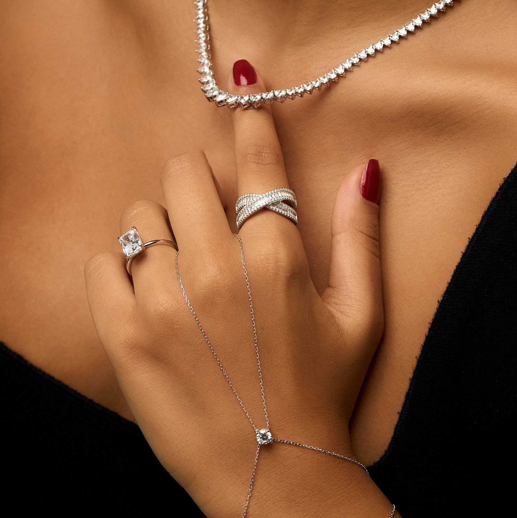 Remie Jewelry’nin zarafetini yansıtan Baget Tek Taş Yüzük, sade formu ve göz alıcı baget kesim taşıyla klasik şıklığı modern bir dokunuşla buluşturur. Işığı kusursuz biçimde yansıtan merkezi taş, zarif tasarımıyla parmakta güçlü ama sofistike bir duruş sergiler. 925 ayar gümüş üzerine yüksek kaliteli rodyum kaplama ile üretilmiştir. Günlük kullanımlarda zamansız bir parıltı sunarken, özel anlarda da asil bir tamamlayıcı olur.