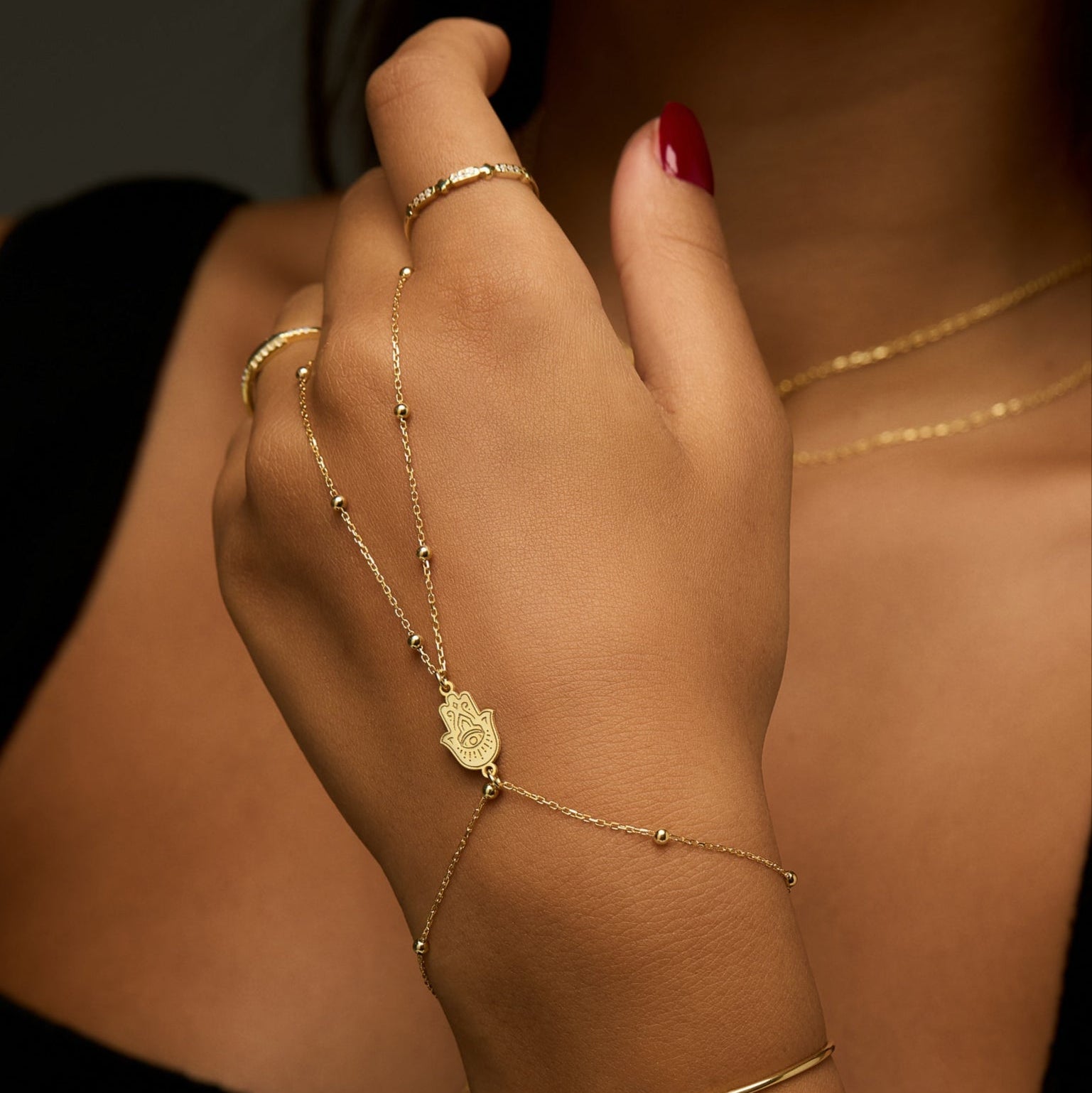 Remie Jewelry’nin zarif ve anlam dolu tasarımı Hamsa Şahmeran, sade gold formuyla minimal şıklığın en zarif halini sunar. Hamsa sembolü, yüzyıllardır koruma ve şansın simgesi olarak bilinir. Elin doğal hareketiyle uyum içinde duran bu özel parça, feminen bir duruşa ince bir anlam katar.