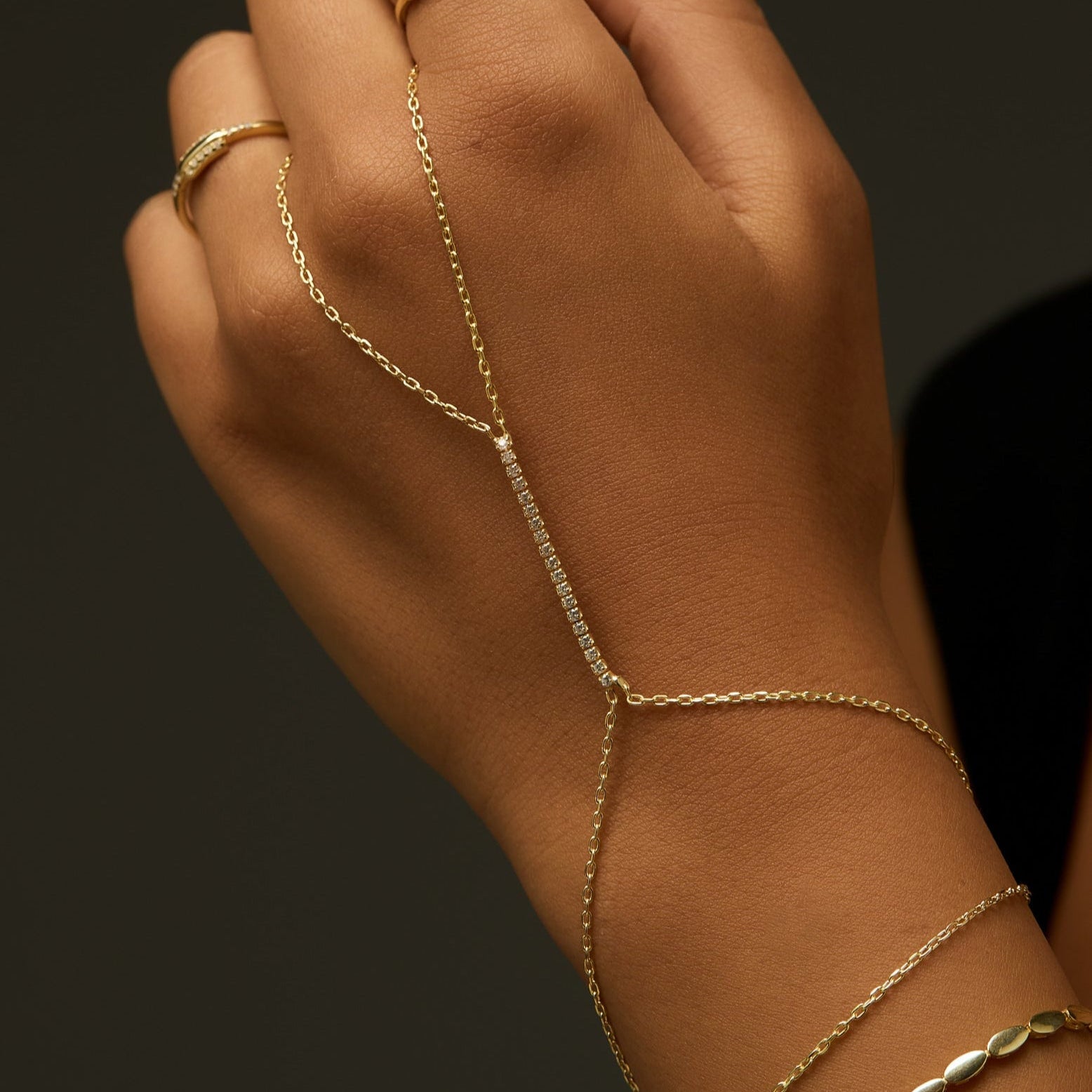 Remie Jewelry’nin zarif çizgisini yansıtan Elara Şahmeran, minimal tasarımıyla sade şıklığın en zarif halini sunar. İnce zincir formunun merkezinde yer alan parlak taş detayları, elin zarafetini vurgularken her harekette ışıltılı bir dokunuş yaratır.