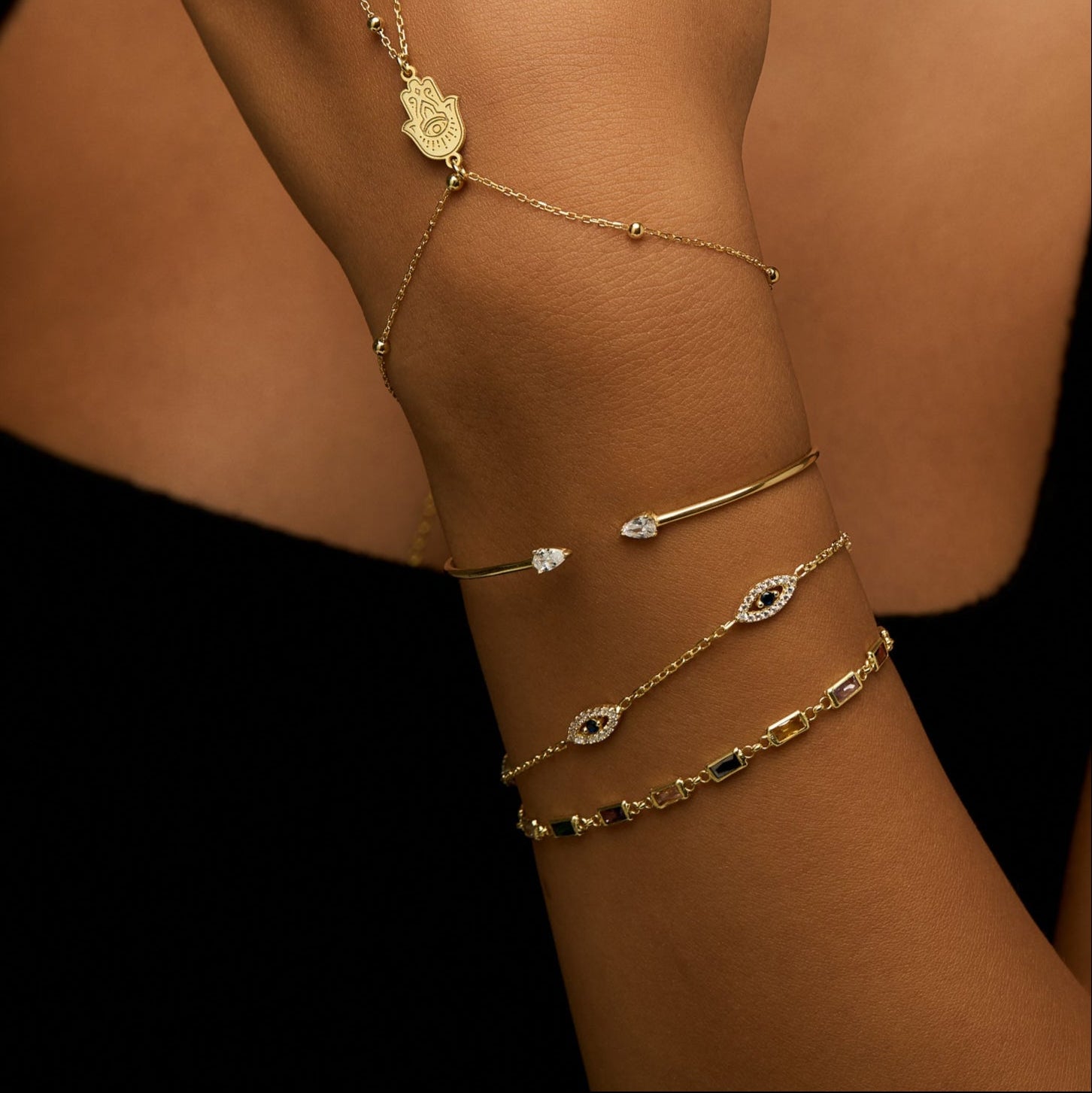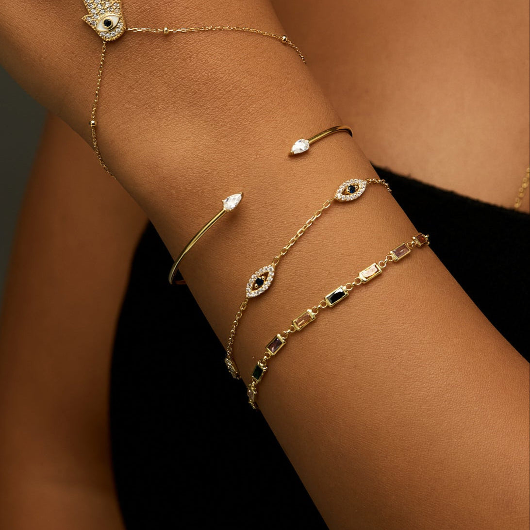 • Tasarım: Altın form üzerine yerleştirilmiş taş detaylı bileklik